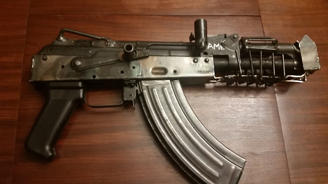 В каментах: А УСМ ему нафик не нужен - боек намертво приварил(сварку автор явно любит), вставил магазин, отвел раму назад и трррррр.