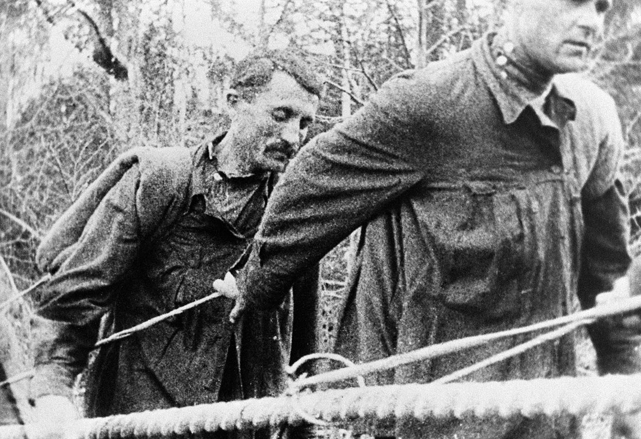 Заключенные Ухтинской экспедиции Управления северных лагерей особого назначения ОГПУ на транспортировке грузов вверх по реке Ижме, 1929 год. Фотохроника ТАСС