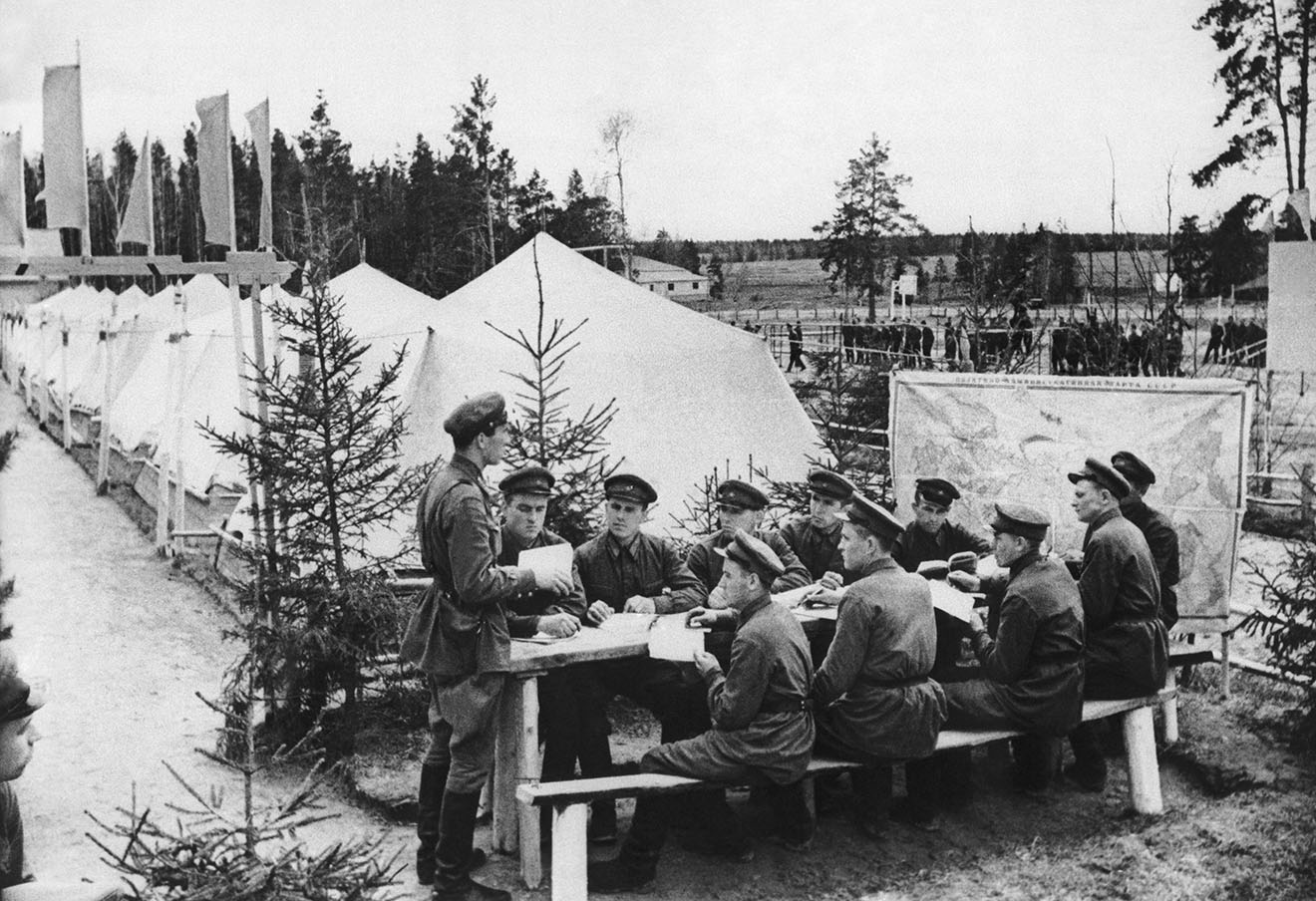Политзанятие с красноармейцами. Фотохроника ТАСС